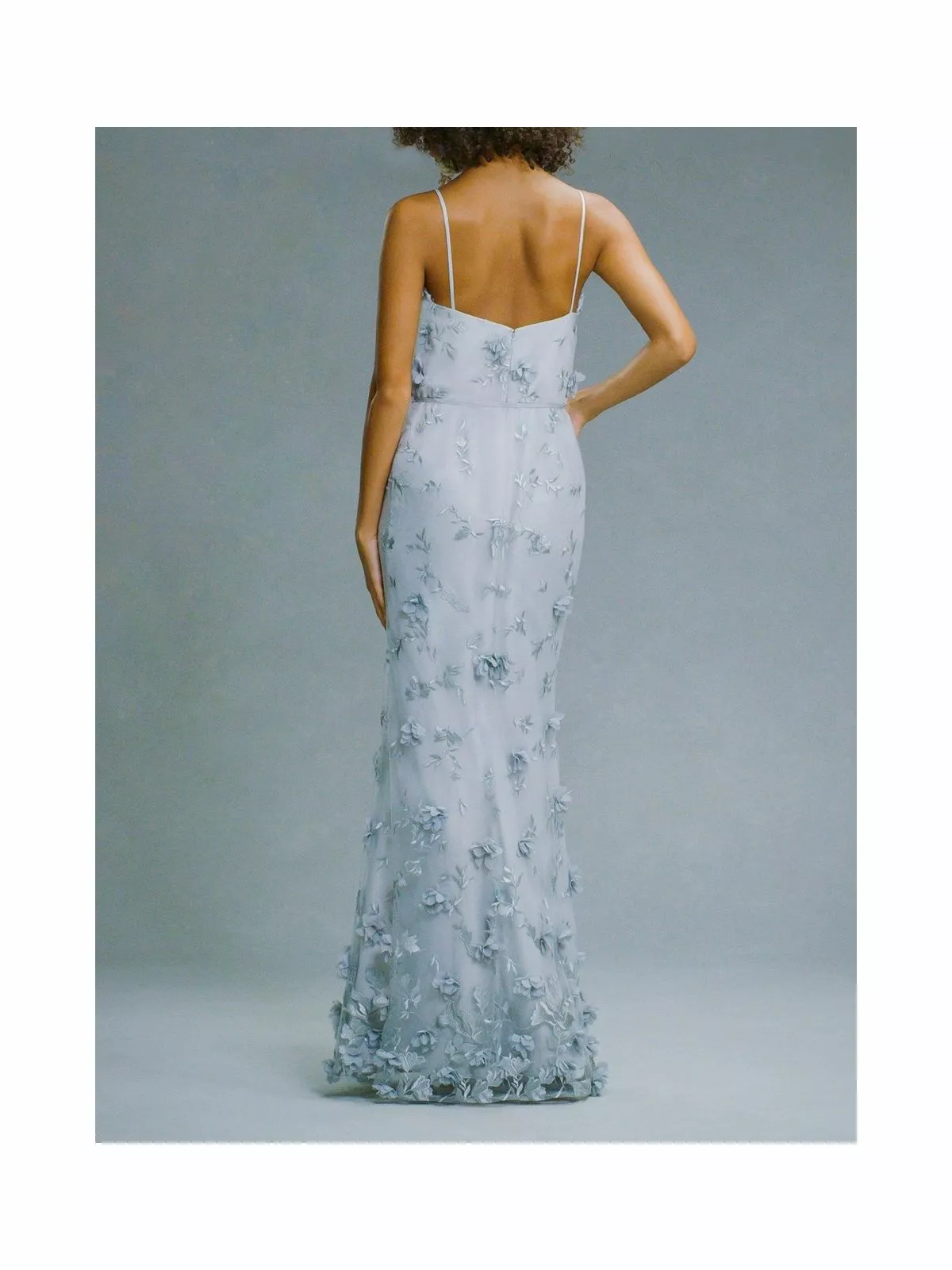 All eyes will be on you at your next event in this Savona gown. Featuring a striking floral applique and amorous silhouette.
