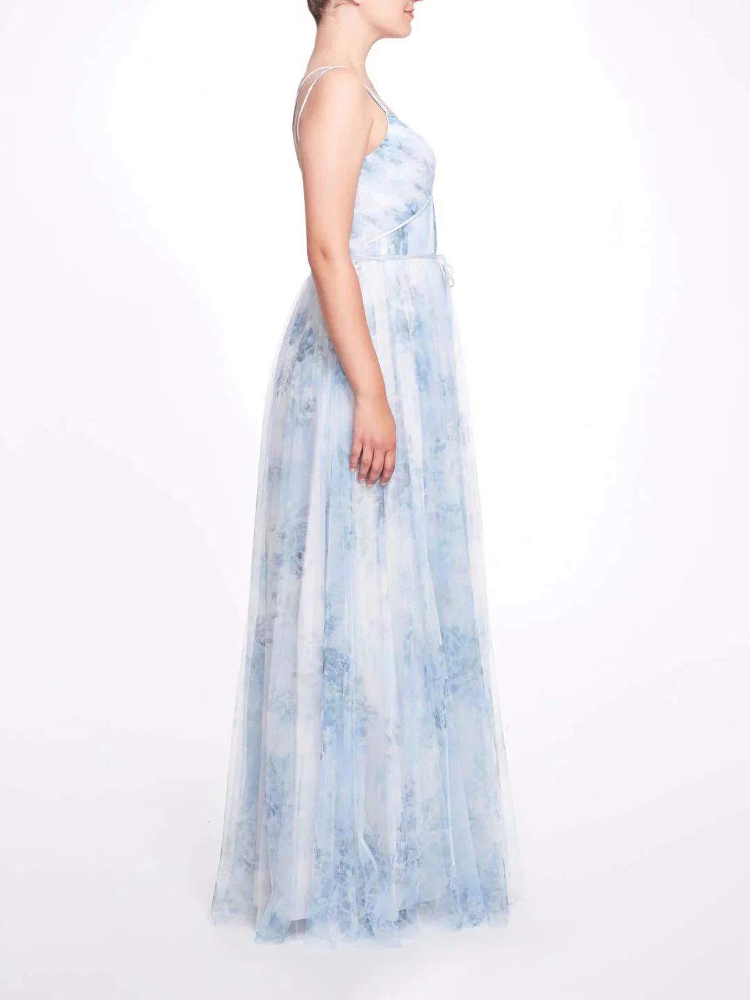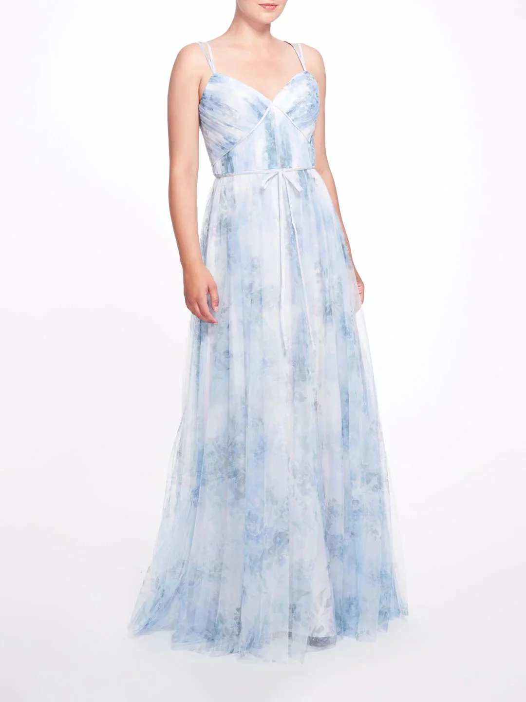 Upgrade your evening edit in the Tuscany print gown, featuring a dainty tie at the waist and dynamic bodice.