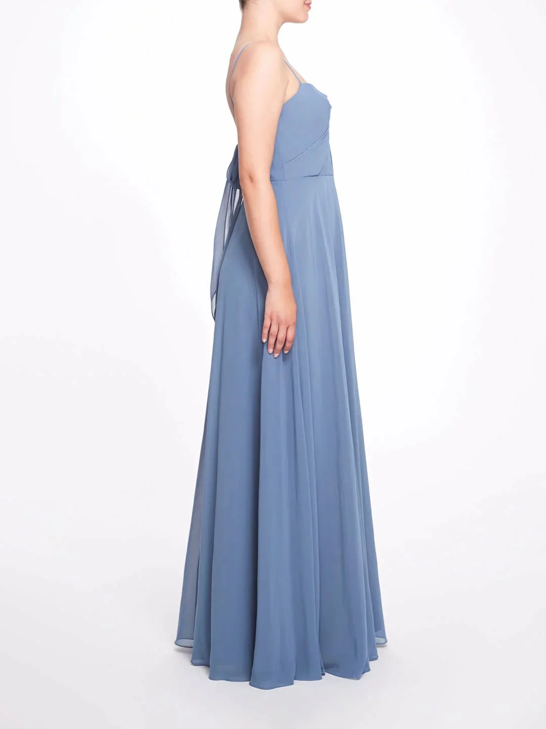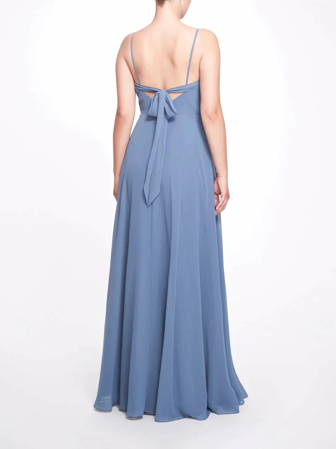 Upgrade your evening edit in the Verona gown, featuring a delicate tie at the back and dynamic bodice.