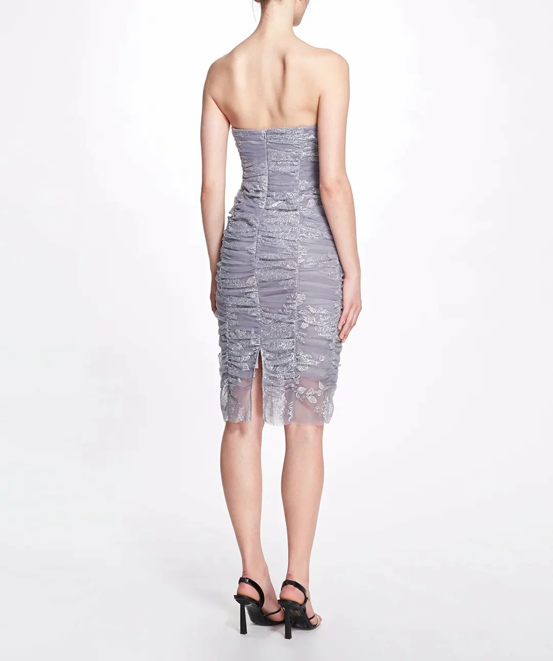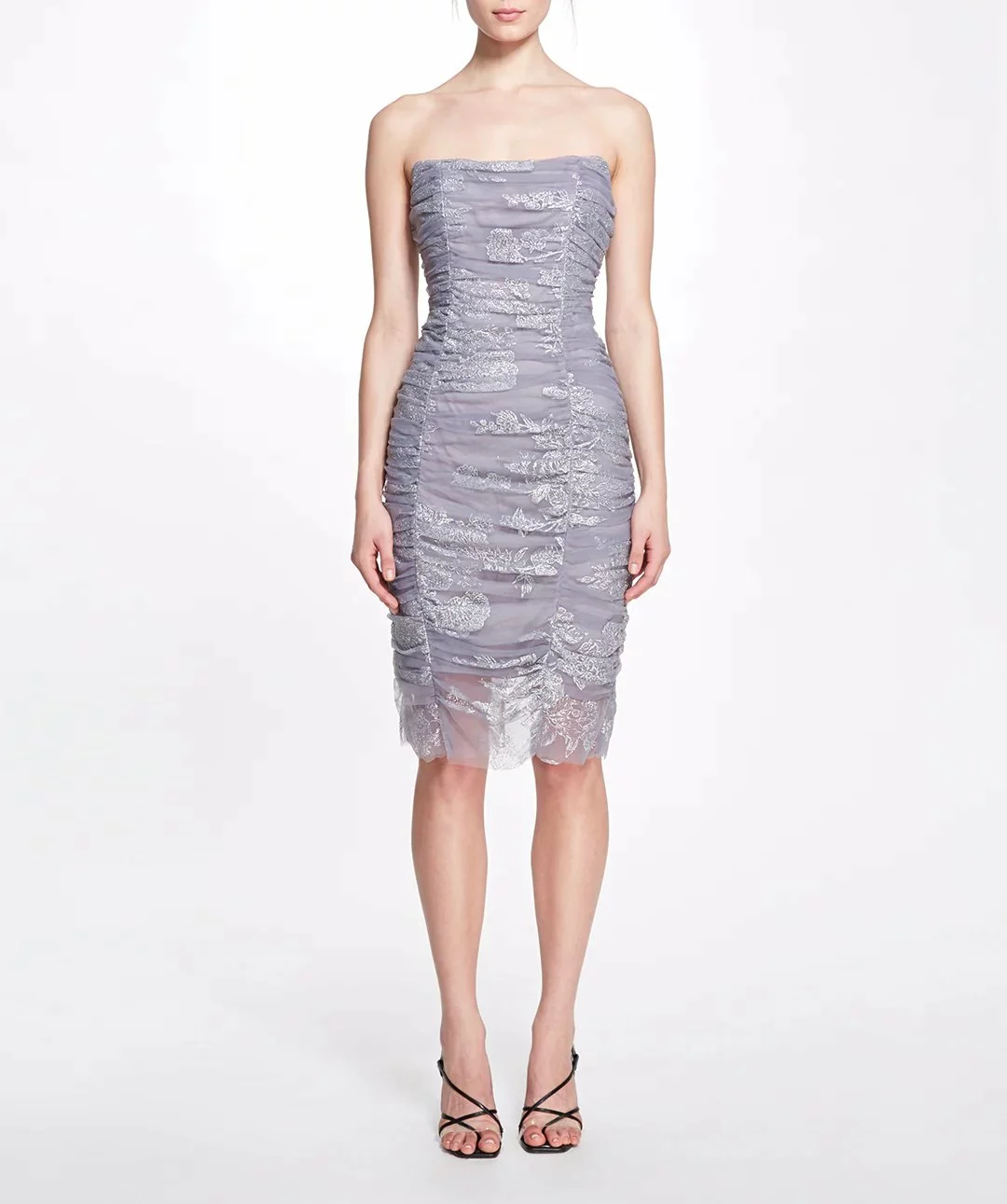 Strapless floral glitter tulle ruched cocktail dress