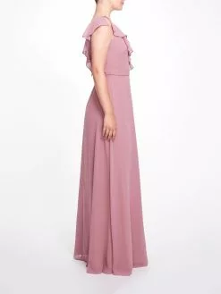 Marchesa Notte Asymmetric Neck Chiffon Ruffle Gown