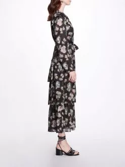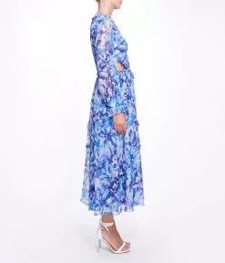 Marchesa Notte Abstract Floral Printed Chiffon Maxi Dress