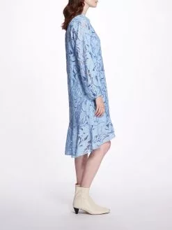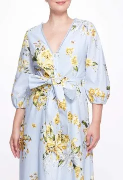 Marchesa Notte A-line Midi Dress With Balloon Sleeves – Dusty Blue